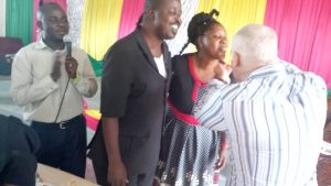 Rev: Denis feeding cake to Bishop Ezekiel and his wife Anna, as an indicator launching the Ministry