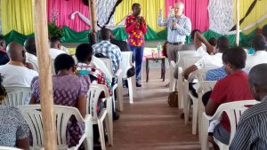 Bishop Ezekiel is given instructions from Rev: Dennis Pethers how to lead The Rooftop Ministry in Tanzania.